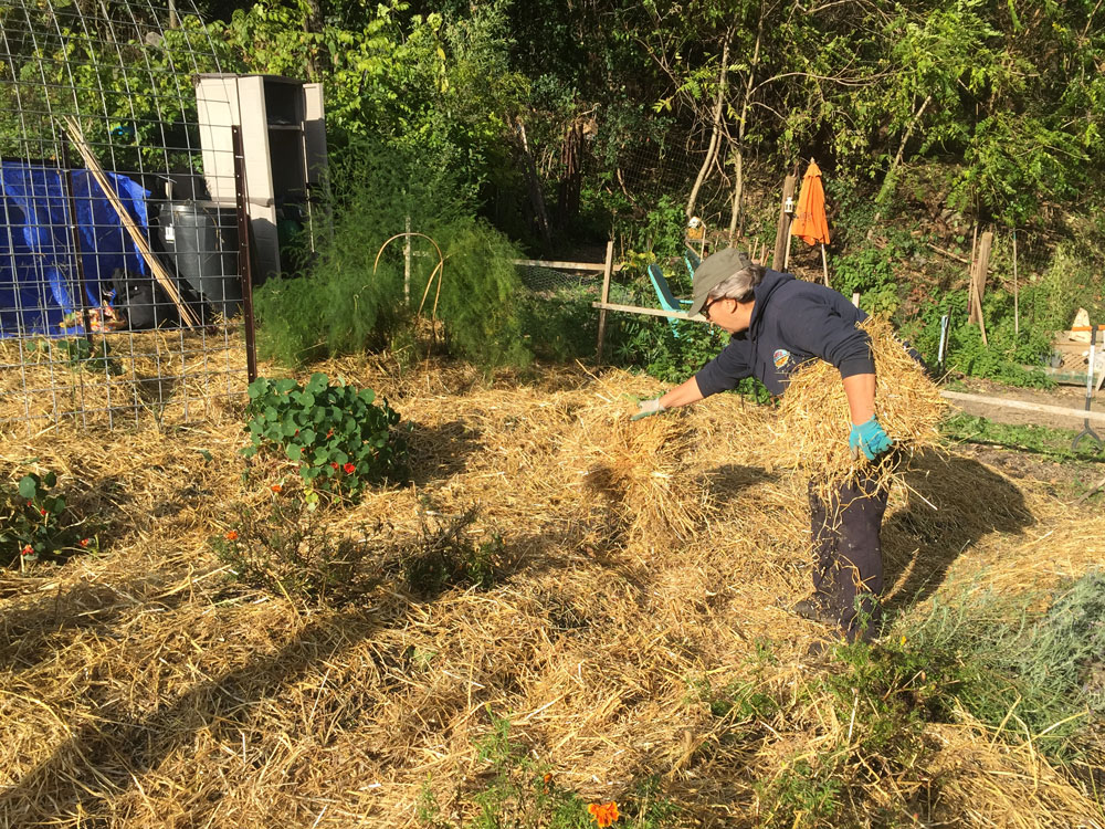 with a good quality compost like Jocelyn’s Soil Booster to replenish depleted soil then cover with mulch such as leaves, straw, shredded pine bark or cedar. Put plastic collars around fruit tree stems to protect them from gnawing bunnies.