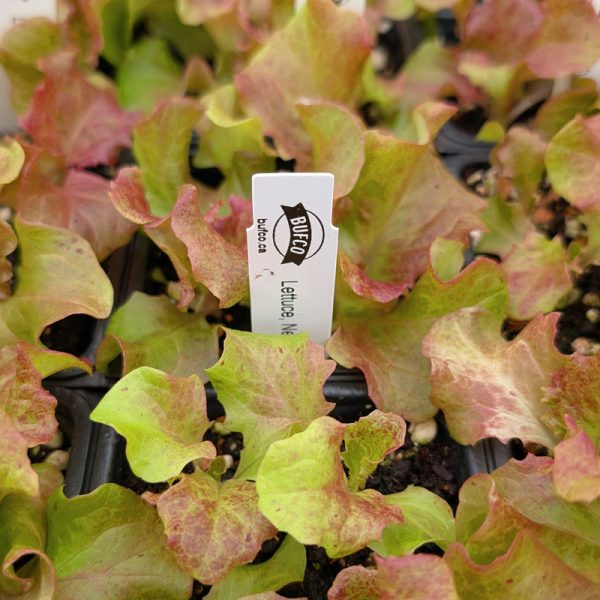 terrific, full size leaf lettuce, ruffled red leaves atop a bright green base, 55 days full size. 4 plants per 4″ pot.