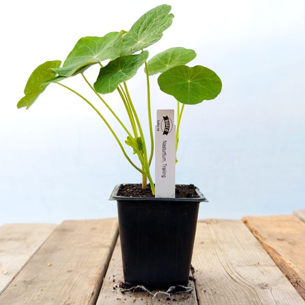 Flowers in red, orange & yellow, blooms have a mild spicy flavour, peppery tasting foliage is also edible. 3 plants per 4″ pot.