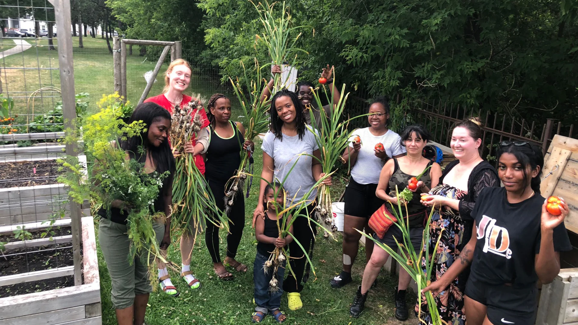 Engaged leadership is essential to every community garden’s success, so we have developed a full season program to animate communities and foster their independence by helping them build skills, from gardening and organization, to conflict resolution. We offer workshops, planting parties and regular work bees, and encourage a shared garden model rather than individual allotments. Everyone is involved in the planning, planting and maintenance of the entire garden and everyone receives an equal share of all that the garden offers. Gardeners wait for a scheduled work bee day to harvest and divide up the bounty. We have found this approach cuts down on theft and conflict, and creates a harmonious, supportive, and happy experience for all.